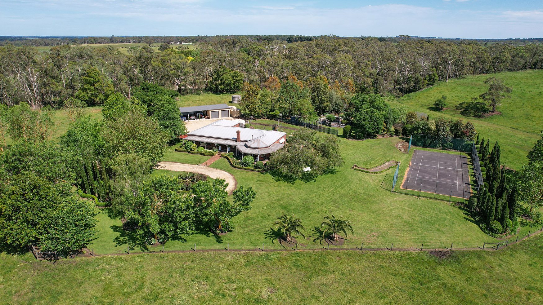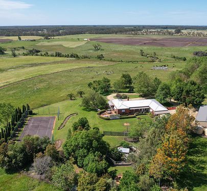 An outstanding large 4 bedroom residence with return veranda, dual car lock up garage set in a park like setting with abundance of water supply, superb mature trees rolling lawns which over looks an asphalt tennis court and out over the valley and Brucknells creek frontage this amazing grazing property features excellent fencing, new steel stockyards, internal track servicing the multiple paddocks, a separate open bay machinery shed with attached dual lock up garage compliment the structural improvements.